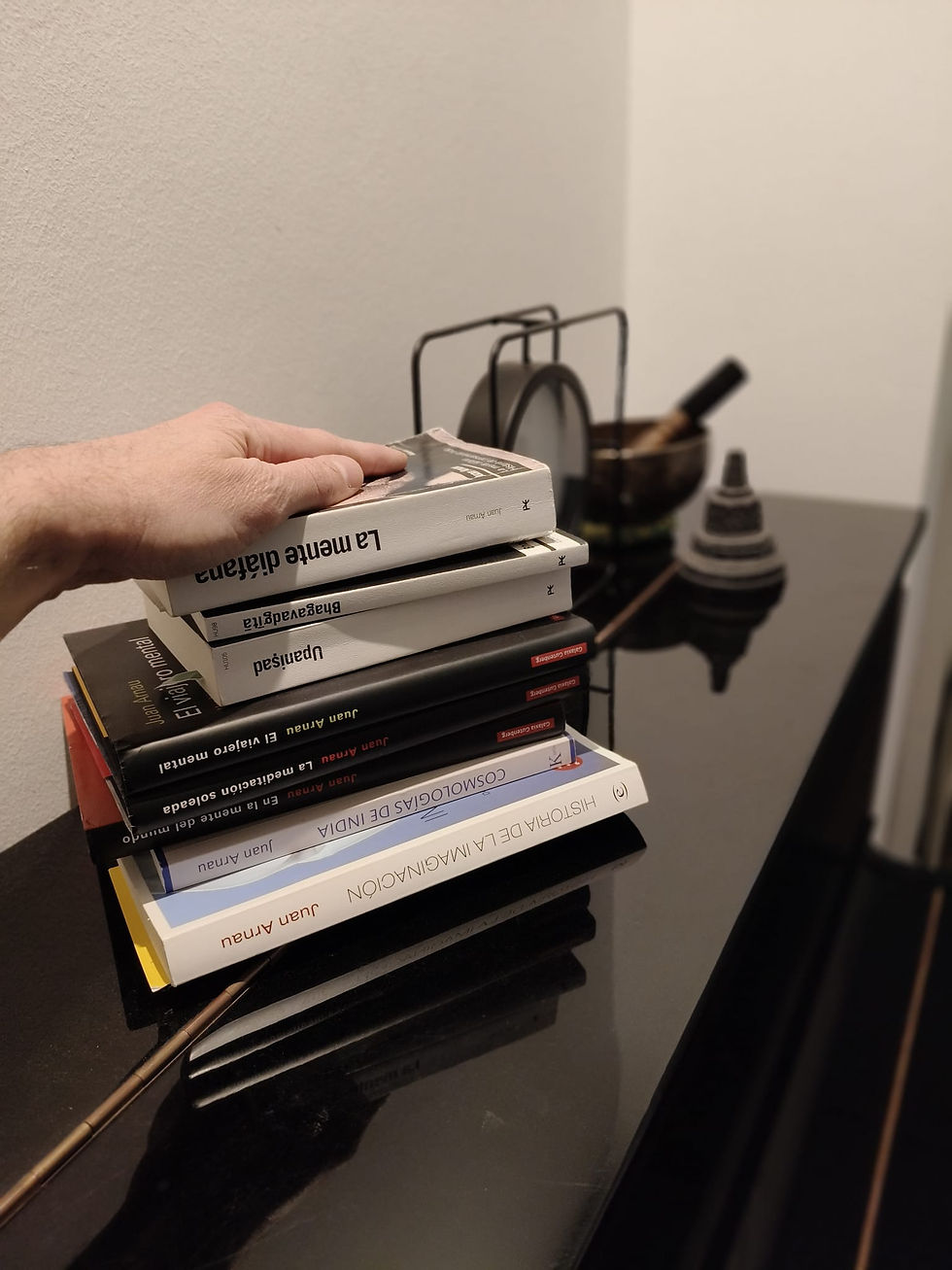 Una de las propuestas de la India es la de ir lentamente deshaciéndote de las etiquetas o capas (Koshas) que uno se va poniendo desde el día en que nació, pudiendo así acceder a su verdadera naturaleza, el centro de todo, el origen (atman) que es precisamente el título de su último libro (Atman, presencia del origen). Siguiendo este pensamiento, tendría que quitar a Juan los epítetos que arriba le puse. Sin embargo, es un hecho que necesitamos esas referencias para viajar en este mundo de símbolos cargados de imaginación.